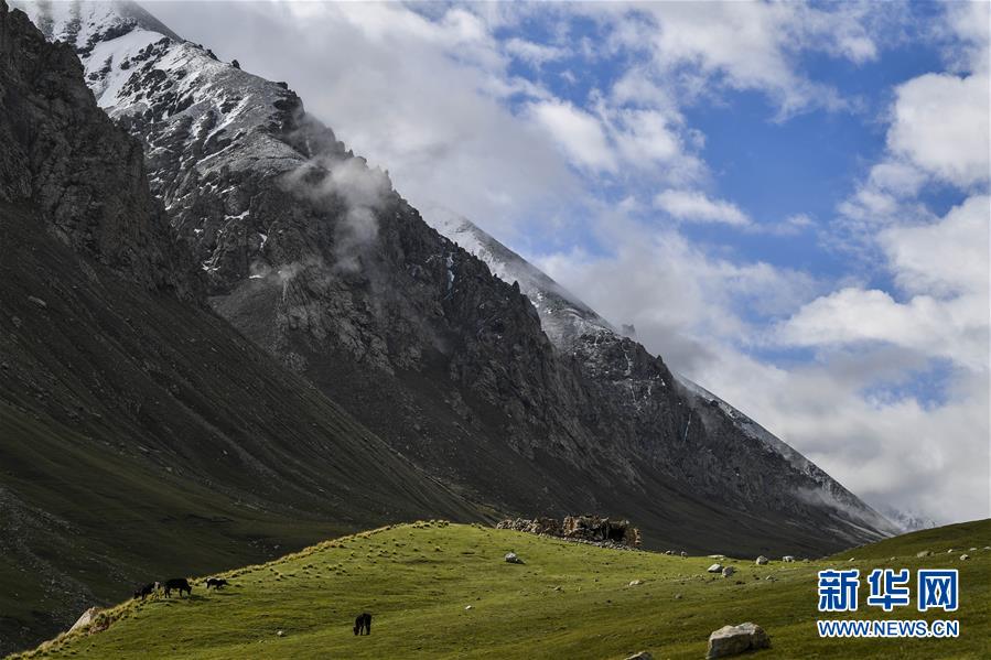 牛羊在拉依布拉克牧場(chǎng)覓食(6月22日攝)。新華社記者 胡虎虎 攝
