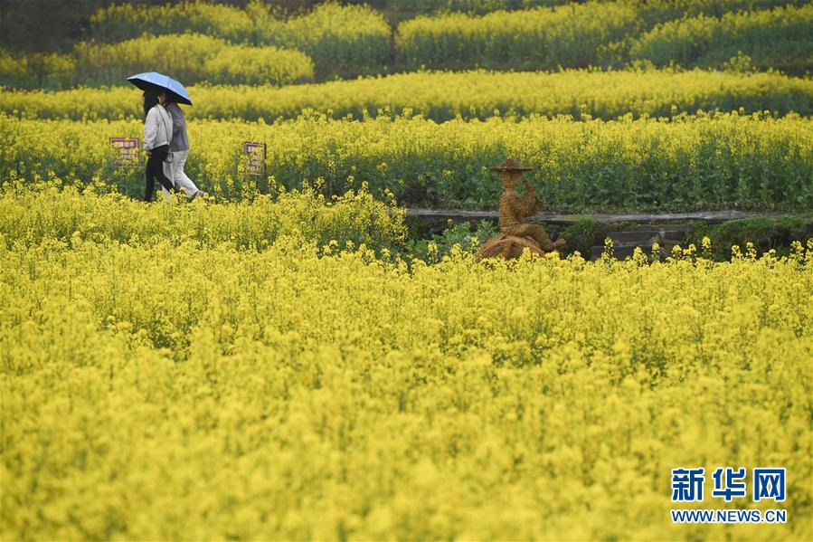 3月28日,游客從黟縣西遞的油菜花田間經(jīng)過。近日,安徽省黃山市黟縣的油菜花迎來盛花期。金黃的油菜花與屋舍、道路等形成一幅幅美麗的鄉(xiāng)村畫卷,引人入勝。 新華社記者張端攝