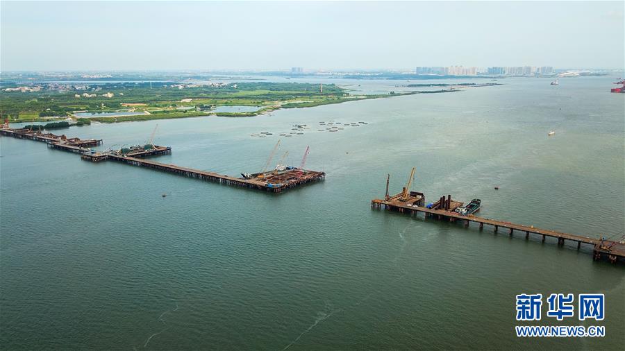 這是7月6日無(wú)人機(jī)拍攝的湛江調(diào)順跨海大橋建設(shè)現(xiàn)場(chǎng)。 新華社記者 劉大偉 攝