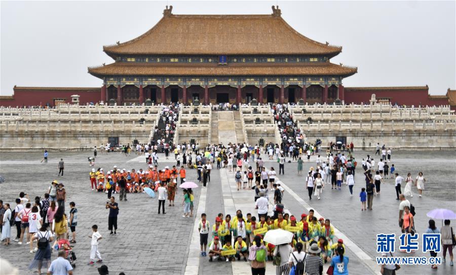 8月3日,游客在故宮參觀。進(jìn)入暑期以來(lái),北京故宮博物院迎來(lái)游覽高峰。故宮博物院采取每日游客限流、熱點(diǎn)景區(qū)導(dǎo)流、供水和醫(yī)療保障等措施,確保游客安全。新華社記者李欣攝