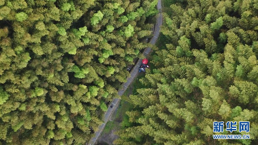 8月3日,游客行走在木坑竹海景區(qū)的小路上(無人機拍攝)。夏日,安徽省黃山市黟縣的木坑竹海景區(qū)風(fēng)景優(yōu)美,吸引不少游客前來休閑避暑。新華社記者張端攝