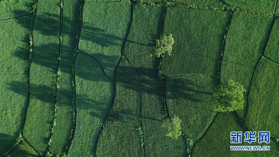 這是8月4日無人機(jī)拍攝的安徽黟縣宏村風(fēng)景區(qū)附近的農(nóng)田晨景。新華社記者 張端 攝