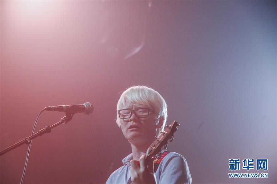 8月14日,8772樂隊(duì)成員謝航程在演唱會(huì)上表演。新華社記者張玉薇攝