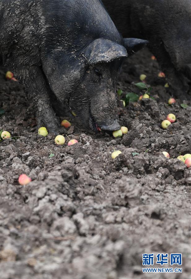 這是8月20日拍攝的果園內(nèi)散養(yǎng)的水果香豬。新華社記者 王昊飛 攝