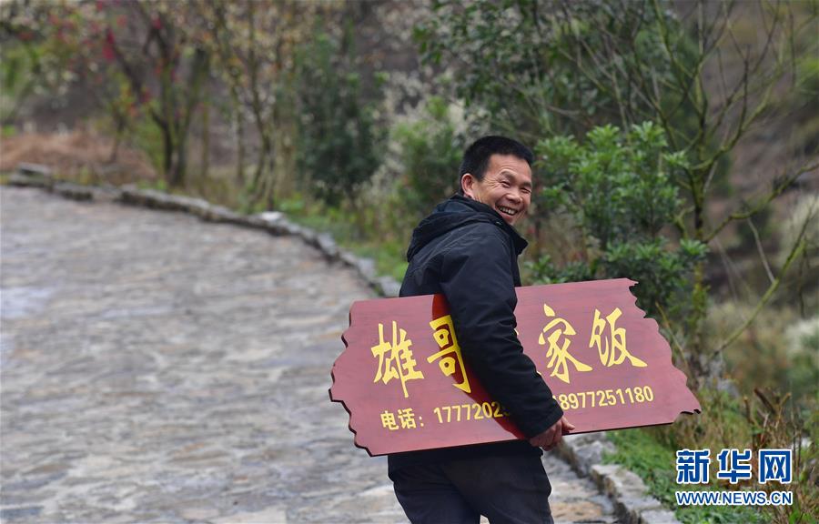 龍革雄在領取農家樂牌匾(3月5日攝)。 新華社記者 黃孝邦 攝
