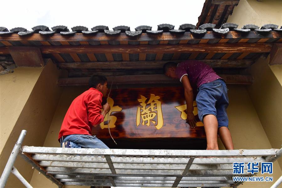 在廣西融安縣大良鎮(zhèn)古蘭村古蘭屯,村民在修繕古民居(8月18日攝)。 新華社記者 黃孝邦 攝