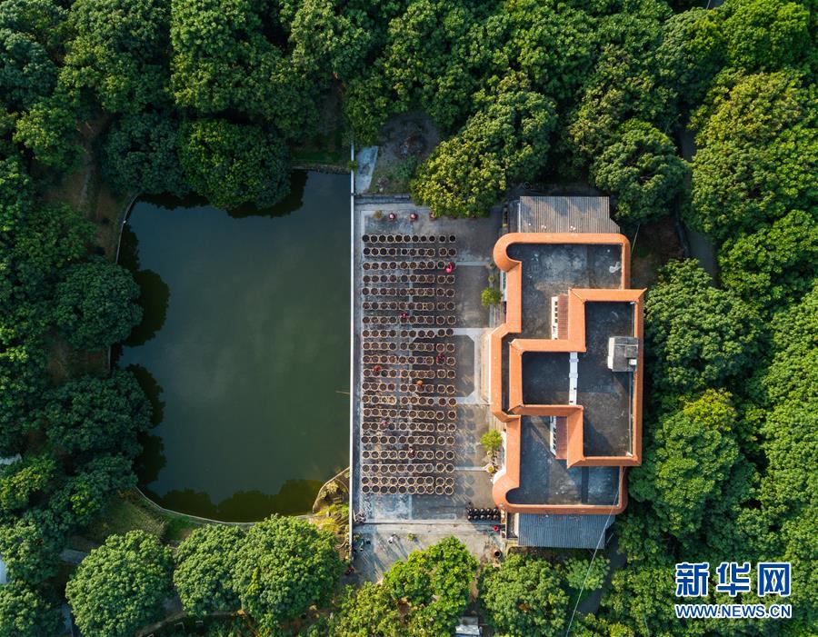 福建省永春縣岵山鎮(zhèn)茂霞村熟地文創(chuàng)園依山傍水,四周是茂密的荔枝林(1月28日無人機(jī)拍攝)。 新華社記者 宋為偉 攝