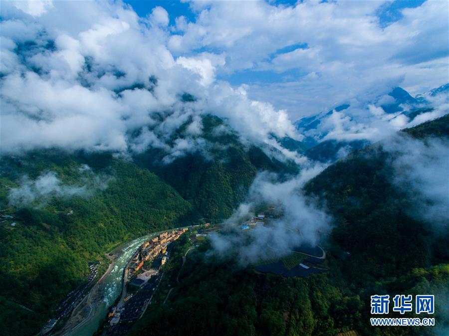 云霧繚繞的獨龍江峽谷,高黎貢山與擔當力卡山夾江而立(4月18日無人機拍攝)。 新華社記者 江文耀 攝