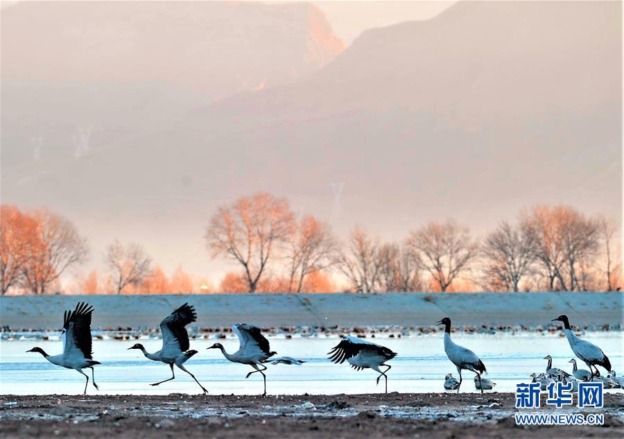 西藏拉薩市林周縣境內(nèi)的黑頸鶴(2017年1月16日攝)。新華社記者 張汝鋒 攝