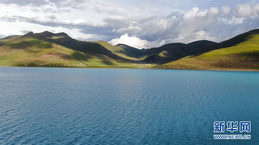 8月31日無(wú)人機(jī)拍攝的羊卓雍錯(cuò)風(fēng)光。 新華社記者 晉美多吉 攝