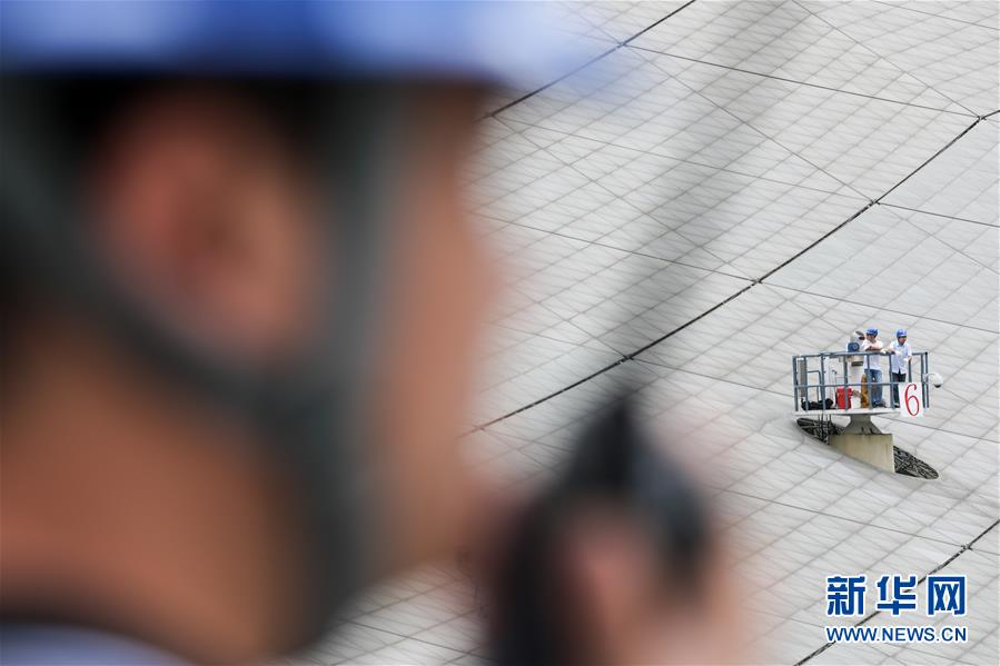 8月28日,工作人員在“中國天眼”內進行檢修。新華社記者 歐東衢 攝