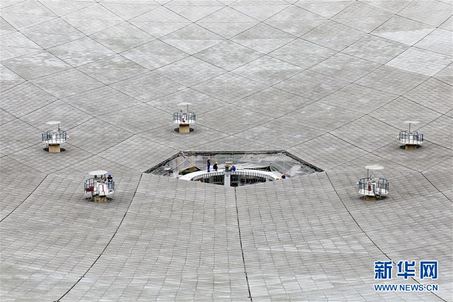 8月28日,工作人員在對FAST進行檢修。 近日,工作人員對“中國天眼”進行日常維護和檢修,給 “天眼”進行全面“體檢”。被譽為“中國天眼”的500米口徑球面射電望遠鏡(FAST)于2016年9月25日落成啟用,即將迎來落成三周年。 新華社記者 歐東衢 攝