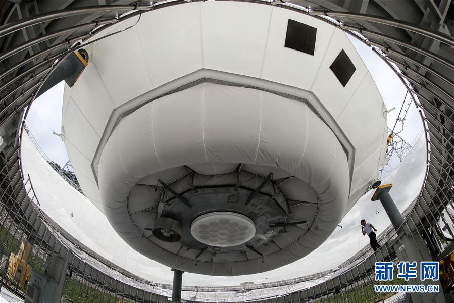 8月28日,工作人員在引導(dǎo)FAST饋源艙下降以進(jìn)行檢修。 新華社記者 歐東衢 攝