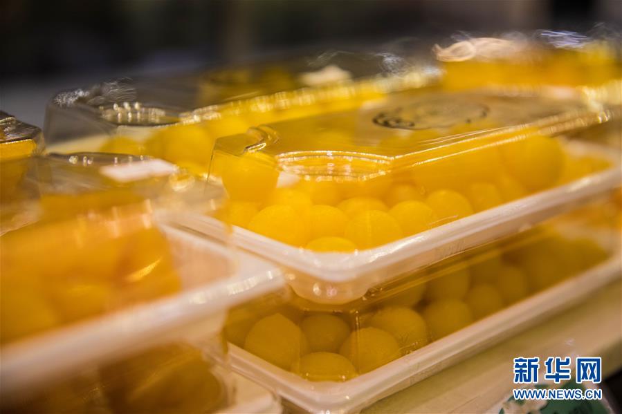 這是9月1日在泰國曼谷著名的“九姐妹甜點”店拍攝的泰國傳統(tǒng)甜點——蛋黃球。新華社記者 張可任 攝
