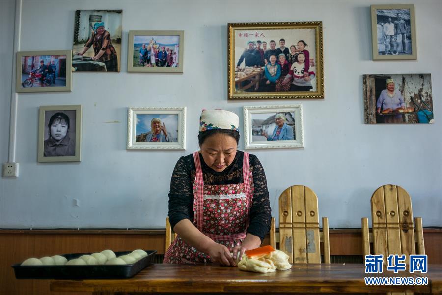 8月29日,付艷梅在列巴房將發(fā)酵好的面團(tuán)揉捏成型。新華社記者張豪夫攝