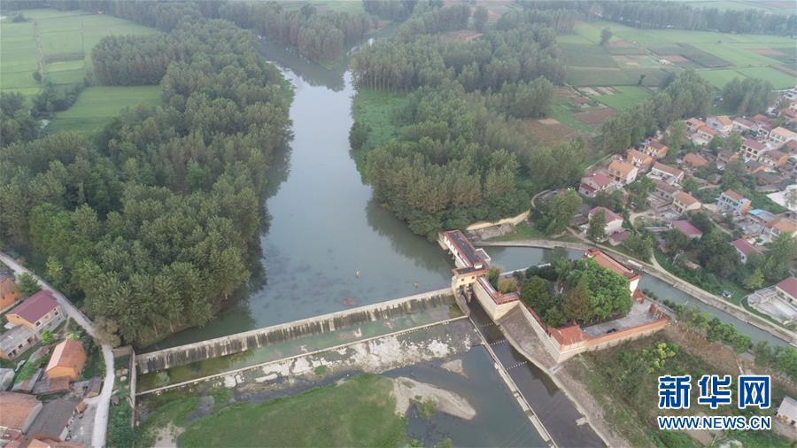 8月14日拍攝的湖北襄陽長渠渠首(無人機(jī)拍攝)。新華社記者 王虎 攝