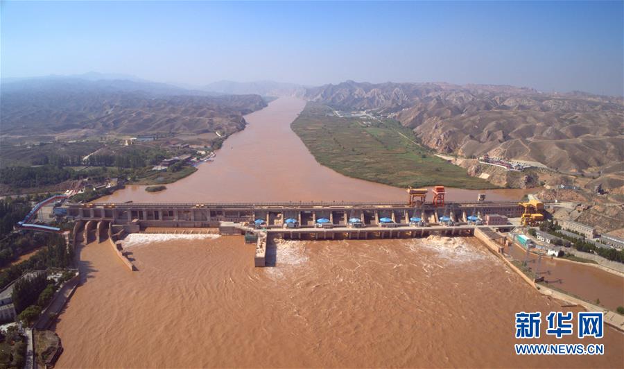 黃河青銅峽水利樞紐工程(9月1日無人機(jī)拍攝)。新華社記者劉詩(shī)平攝