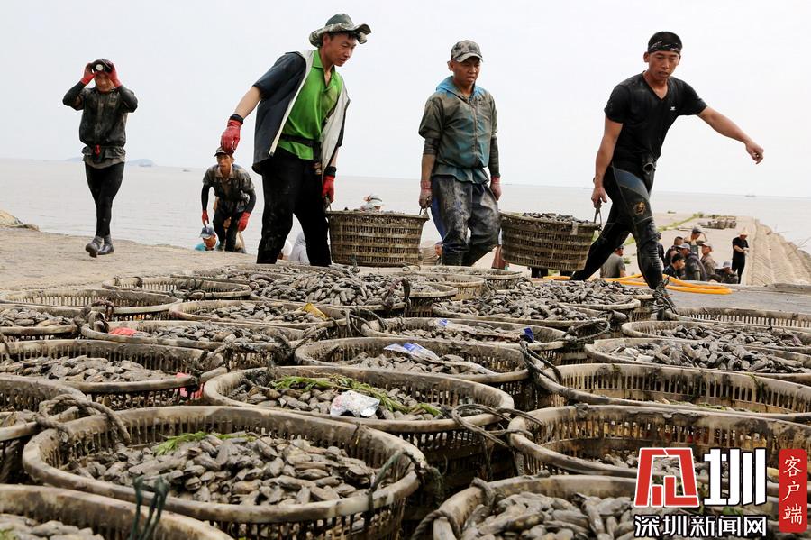 時下正是沿海地區(qū)海蟶收獲的季節(jié),在江蘇連云港海邊的灘涂上,漁民們將收獲的海蟶裝箱外運(yùn),一片忙碌。