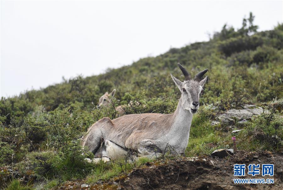 一只巖羊在西藏山南市洛扎縣色鄉(xiāng)海拔4000米左右的盤(pán)山路邊看著鏡頭(9月22日攝)。 新華社記者 晉美多吉 攝