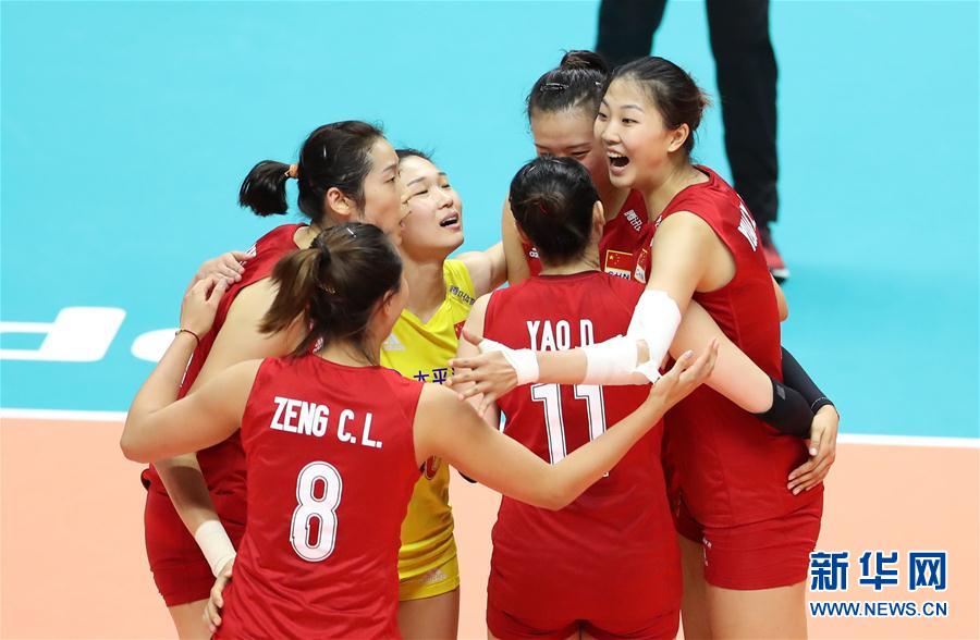 9月22日,中國隊(duì)球員在比賽中慶祝得分。當(dāng)日,在日本札幌舉行的2019年女排世界杯賽第二階段A組循環(huán)賽比賽中,中國隊(duì)以3比2戰(zhàn)勝巴西隊(duì)。新華社記者杜瀟逸攝