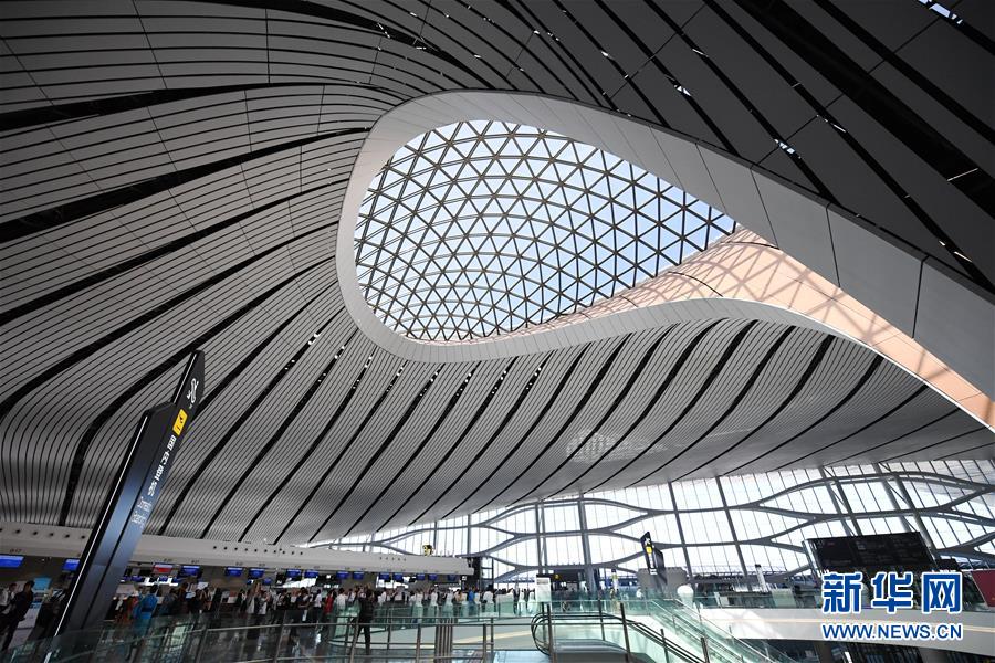 9月25日拍攝的北京大興國際機場航站樓內部。新華社記者張晨霖攝