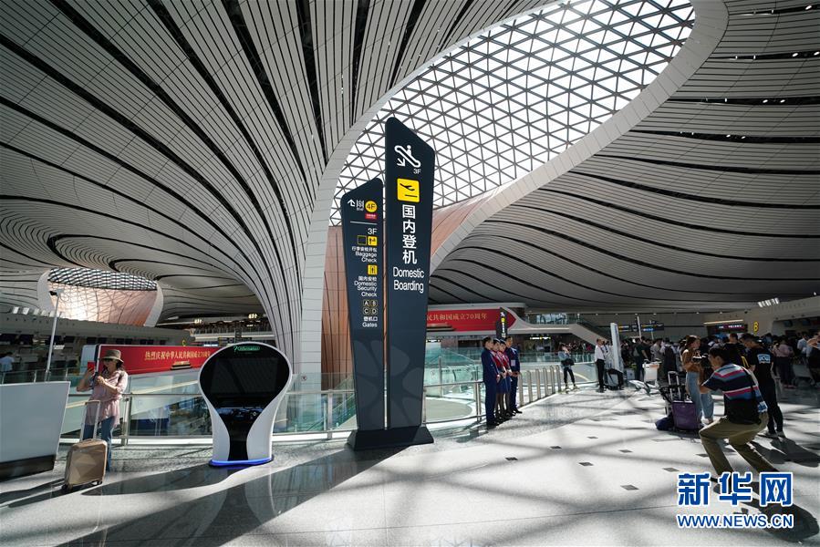 9月25日,乘客在北京大興國際機場航站樓內登機。新華社記者張晨霖攝