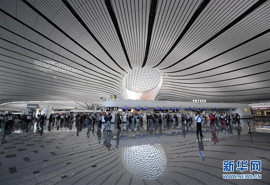 9月25日,中國南方航空公司的CZ3001次航班從北京大興國際機場起飛。當日,北京大興國際機場正式通航。北京大興國際機場位于北京市大興區(qū)和河北省廊坊市廣陽區(qū)之間,與天安門直線距離為46公里,是目前全球建設規(guī)模最大的新建機場。新華社記者鞠煥宗攝