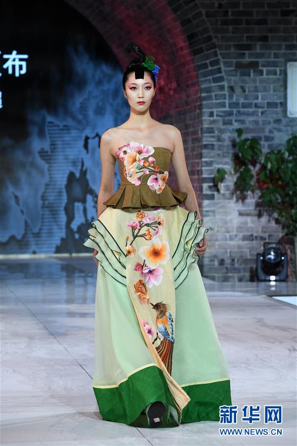 9月25日,模特在榮昌夏布·張義超非遺時尚大秀上展示時裝設(shè)計師張義超的時裝作品。新華社記者 唐奕 攝