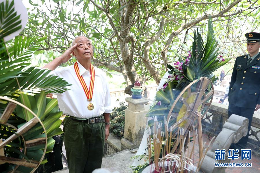 9月30日,在越南北部河南省,一名中國援越老兵向中國烈士紀(jì)念碑敬禮。 中國駐越南大使館館員、中國援越老戰(zhàn)士及其親屬、在越中資機(jī)構(gòu)和留學(xué)生代表等30日前往位于越南河南省的金榜烈士陵園,祭奠長眠于此的14名中國援越烈士。越中友協(xié)副主席阮榮光等越方代表也參加了祭掃活動(dòng)。 新華社記者 王迪 攝