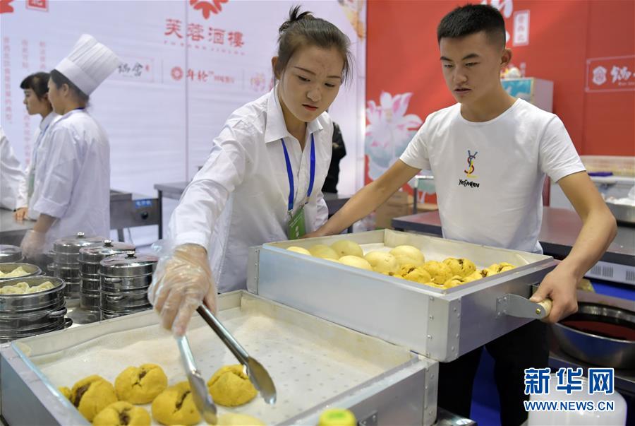 10月3日,工作人員在整理制作好的面點。新華社記者 曹陽 攝