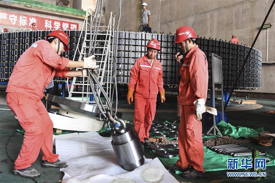 10月6日,工人在大藤峽水利樞紐工程工地上搬運(yùn)設(shè)備。新華社記者曹祎銘攝