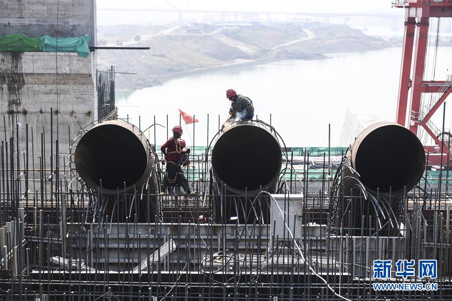 10月6日,工人在大藤峽水利樞紐工程工地上焊接鋼筋。新華社記者曹祎銘攝