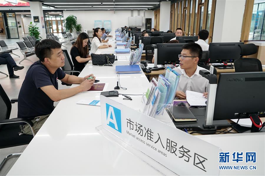 企業(yè)工作人員在雄安新區(qū)政務服務中心內(nèi)辦理業(yè)務(8月30日攝)。新華社記者牟宇攝