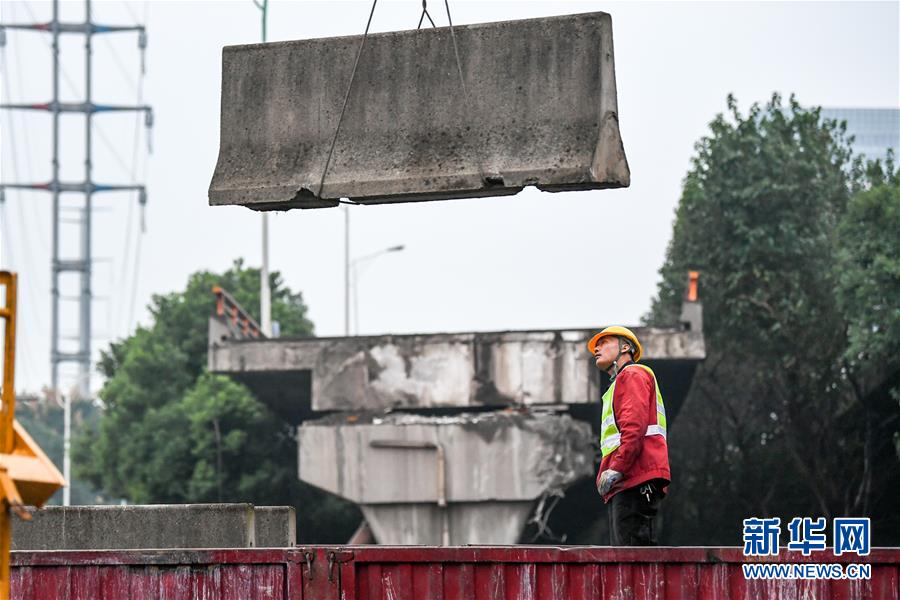 10月12日,錫港路恢復(fù)通車。 江蘇省無錫市錫山區(qū)高架橋側(cè)翻事故中側(cè)翻橋面清理完成,10月12日7時許,下層橫穿大橋的錫港路恢復(fù)通車。 新華社記者 李博 攝