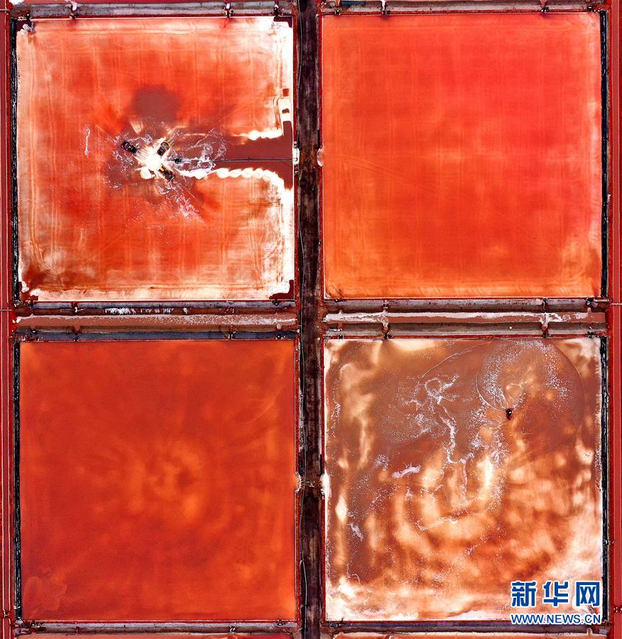 日前,山東省無棣縣境內(nèi)的魯北鹽場進(jìn)入海鹽收獲季節(jié),星羅棋布的鹽池將大地裝扮得繽紛如畫。無棣縣位于山東省北部渤海之濱,全縣擁有鹽田365萬公畝,是我國重要的海鹽生產(chǎn)基地。據(jù)無棣縣工信局統(tǒng)計,今年1-9月份,當(dāng)?shù)卦}產(chǎn)量111.7萬噸。