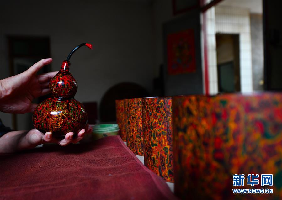 10月12日,丁國(guó)坤在家中用涂抹了香油的手指對(duì)一件未成形的脫胎漆器進(jìn)行“拋光”工序。新華社記者胡晨歡攝