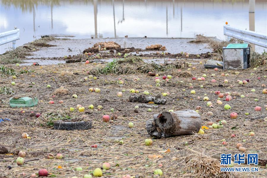 10月14日,在日本長野市,千曲川決堤后,水流侵襲了附近的蘋果樹。受縱貫東日本強(qiáng)臺(tái)風(fēng)“海貝思”帶來的強(qiáng)降雨影響,日本多地暴發(fā)洪災(zāi),已造成33人死亡、19人失蹤。據(jù)日本共同社13日統(tǒng)計(jì),“海貝思”過境導(dǎo)致日本多處河流泛濫,目前有21條河流決堤24處。其中,流經(jīng)長野縣的千曲川決堤,造成長野市和千曲市大范圍被淹,大片住宅區(qū)被洪水包圍,有的房屋甚至被淹至2層。新華社記者華義攝