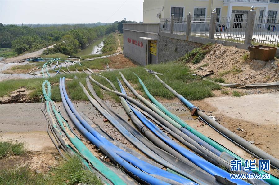 在江西省南昌市南昌縣蔣巷鎮(zhèn),工作人員通過水泵從贛江中抽水保障當(dāng)?shù)剞r(nóng)業(yè)用水。這是鋪設(shè)的水管(10月10日攝)。 7月下旬至10月初,江西省平均降雨量為96毫米,比多年均值偏少約七成,排歷史同期倒數(shù)第一位,持續(xù)的少雨天氣導(dǎo)致江西省主要江河水位持續(xù)走低,多地出現(xiàn)不同程度的旱情。 針對當(dāng)前旱情,江西各地紛紛采取措施,積極組織群眾開展抗旱自救,力爭將旱情帶來的損失降到最低。 新華社記者 彭昭之 攝
