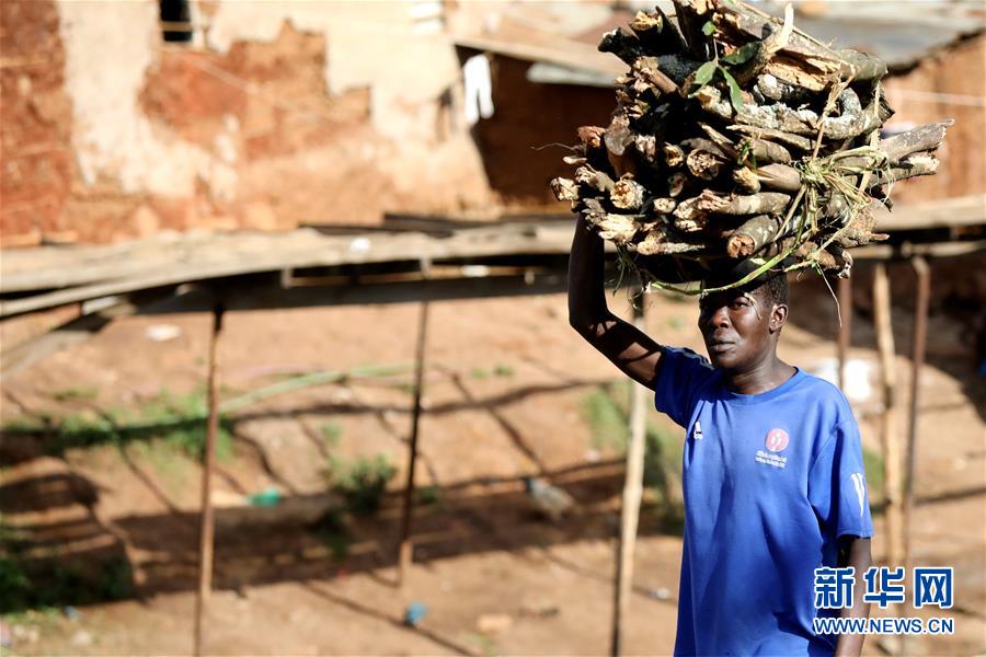 10月16日,在肯尼亞內(nèi)羅畢基貝拉貧民窟,一名男子運(yùn)送劈柴。新華社記者王騰攝