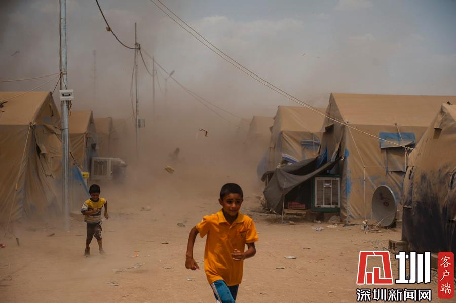 當(dāng)?shù)貢r(shí)間2014年7月23日,伊拉克Khazir,Khazir難民營(yíng)的孩子們?cè)谏硥m暴中奔跑。逃離“伊拉克和黎凡特伊斯蘭國(guó)”(ISIS)極端組織的伊拉克人在Khazir難民營(yíng)里避難。這所難民營(yíng)建于6月10日,目前有700人住在這里,其中大多數(shù)是穆斯林。