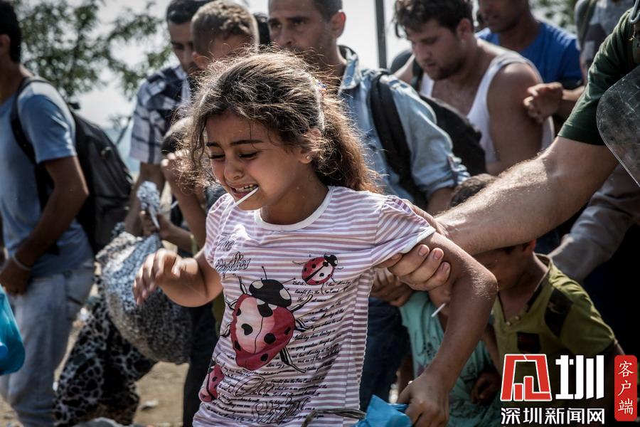 當(dāng)?shù)貢r(shí)間2015年8月26日,馬其頓蓋夫蓋利亞,一名敘利亞女孩越過馬其頓與希臘的邊境。