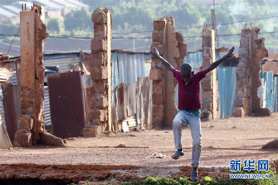 10月16日,在肯尼亞內(nèi)羅畢基貝拉貧民窟,一名兒童在放學(xué)后玩耍。新華社記者王騰攝