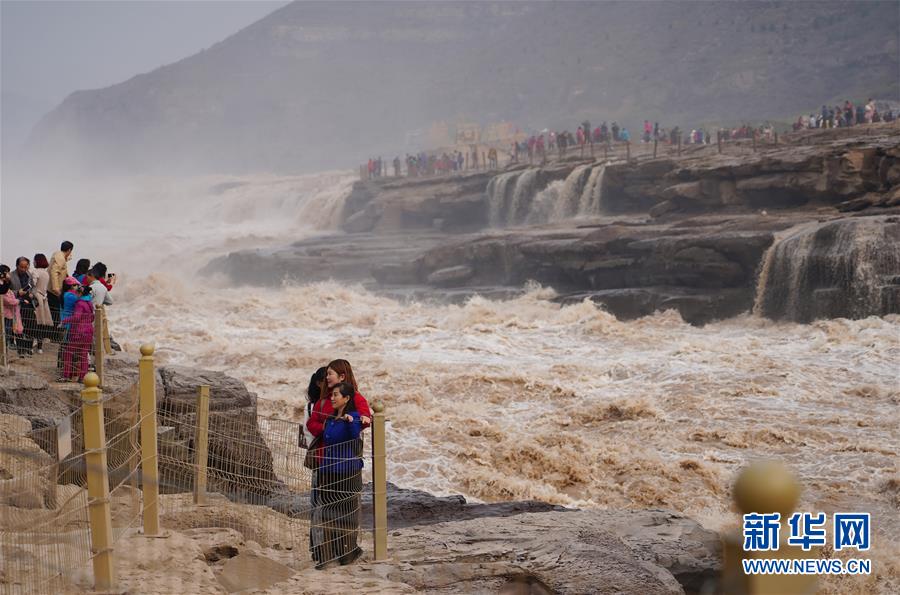 壺口瀑布水量增大 引眾多游客觀賞