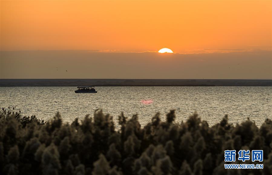 這是10月17日拍攝的日出時(shí)分的居延海風(fēng)光。新華社記者 彭源 攝