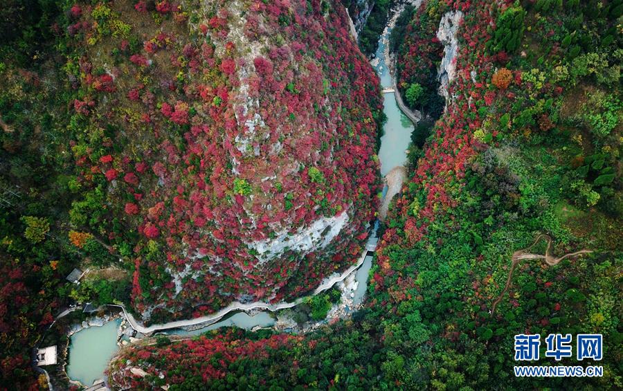 這是10月19日無(wú)人機(jī)拍攝的河北省涉縣太行紅葉大峽谷景色。金秋十月,河北省涉縣偏城鎮(zhèn)太行紅葉大峽谷的紅葉進(jìn)入觀賞佳期,吸引眾多游客前來(lái)登山賞景。新華社記者王曉攝