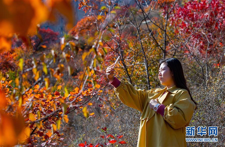 10月24日,游客在河北省武安市賀進鎮(zhèn)后臨河村拍照留念。新華社記者王曉攝