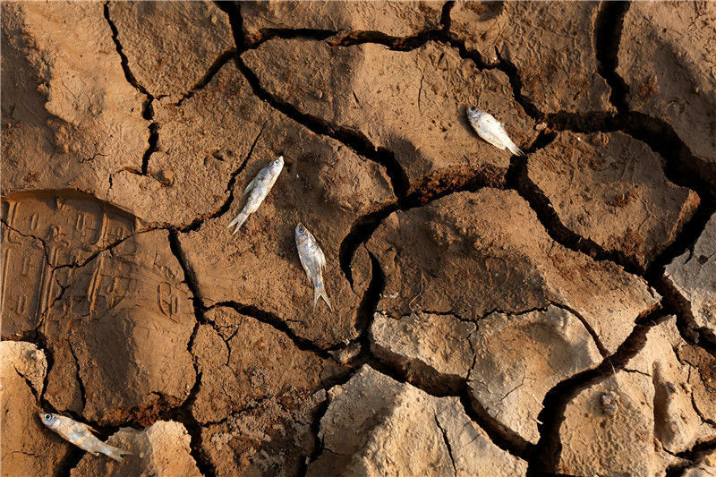 當(dāng)?shù)貢r間2016年5月13日,柬埔寨甘丹省,受厄爾尼諾現(xiàn)象影響,當(dāng)?shù)卦庥龈珊堤鞖?,池塘干涸開裂。