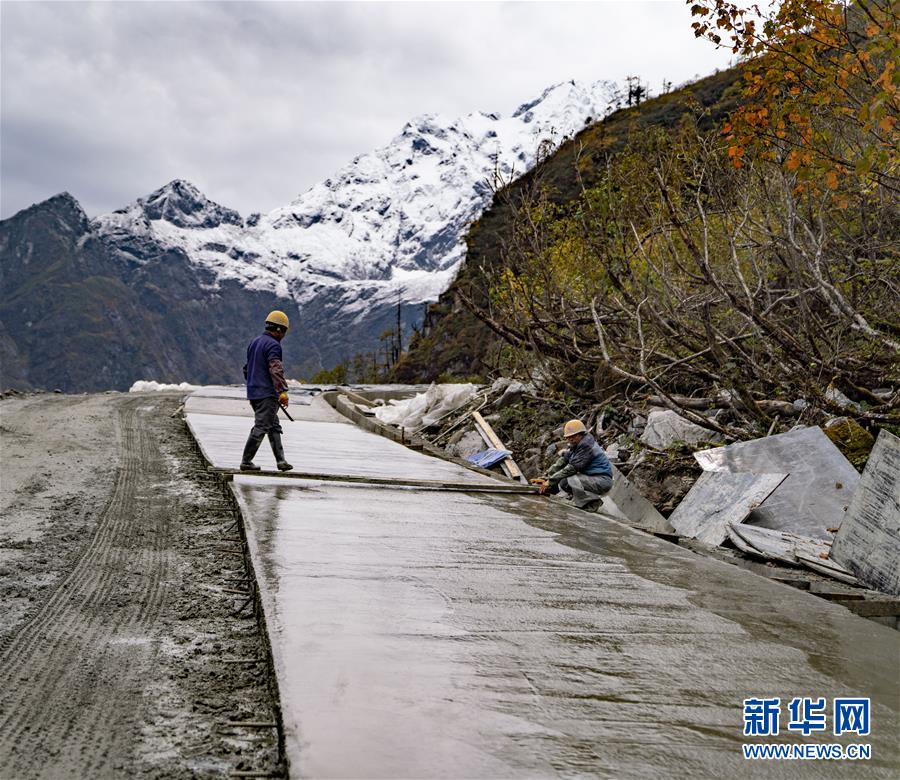 工人們在派墨農(nóng)村公路施工現(xiàn)場作業(yè)(10月24日攝)。新華社記者普布扎西攝