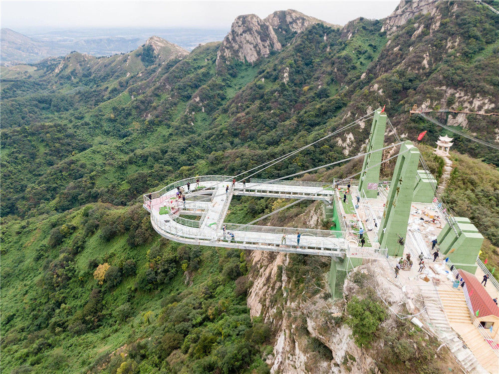 2019年9月20日,從落差198米懸崖上伸出周長60米懸空的“高空玻璃懸廊”在河南南陽七峰山落成,該玻璃懸廊名為“云頂之心”。