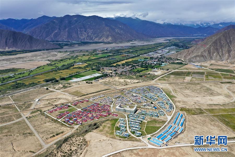 鳥瞰曲水縣才納鄉(xiāng)四季吉祥村(8月8日無人機拍攝)。新華社記者普布扎西攝